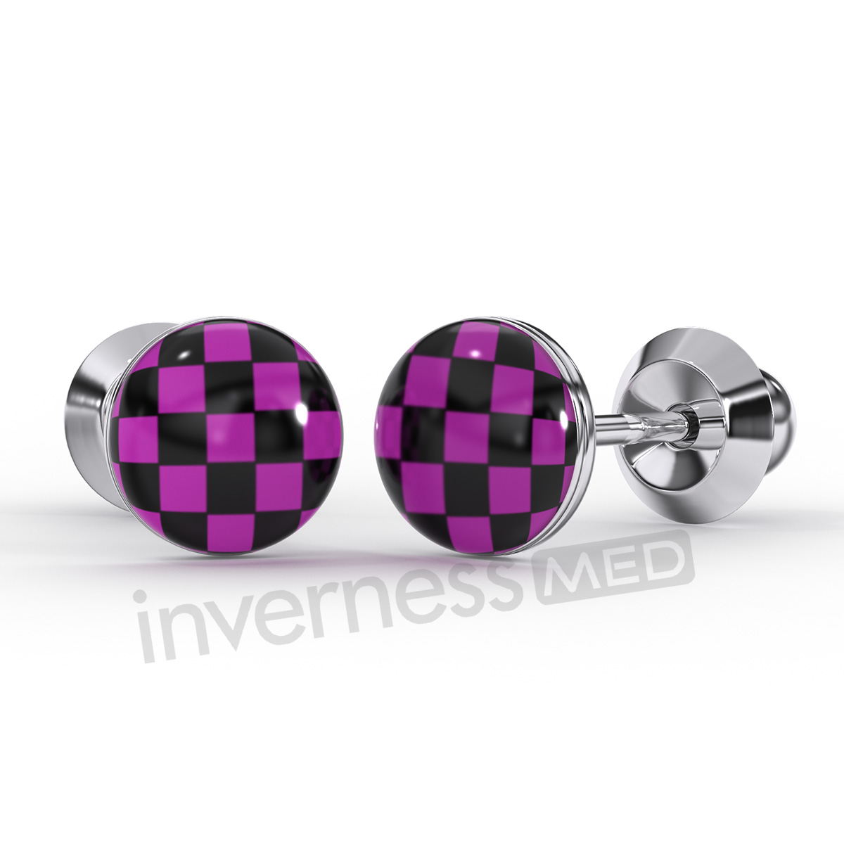Серьги-пуговицы «Шахматы» розовые 5 мм